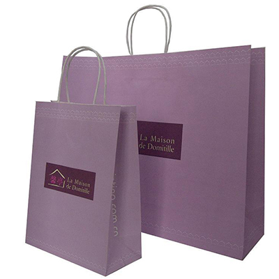 覆膜纸袋表面有塑料涂层,这种纸袋看起来比较高档,不仅防水,而且承重力也比较好。